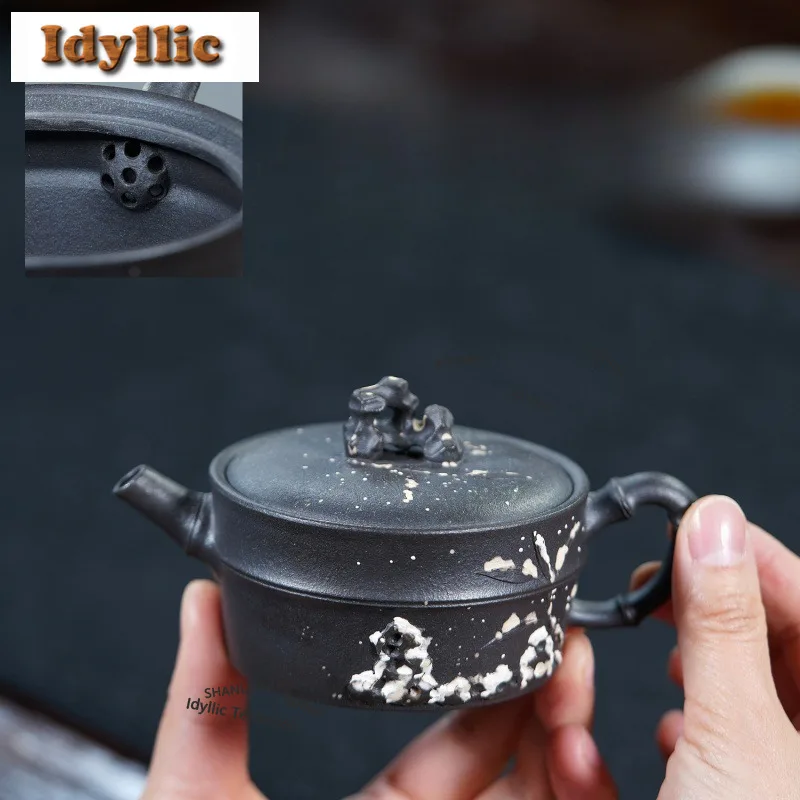 360 ml alte Yixing-Teekannen aus lila Ton, handgefertigt, Kranich-Drachen-Ei-Topf, rohes Erz, Xuan-Eisenstein, gelber Schlamm, Wasserkocher, Zisha-Teeset