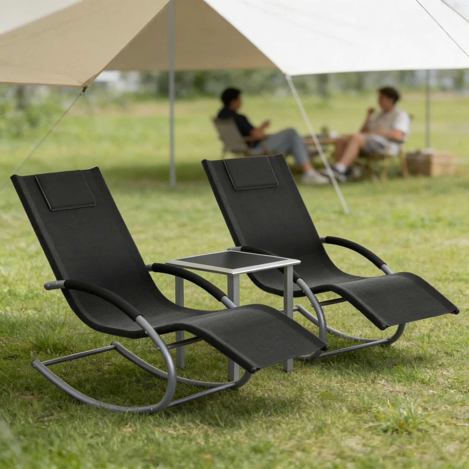 3-teiliges Set Gartenstühle & Beistelltisch, 2 Schaukel-Loungesessel 1 Kleiner Kaffeetisch, Camping Strand Pool Sessel Möbelsets