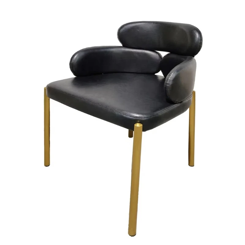 Moderner Kommerzieller Esszimmerstuhl Schwarzer Leder-Polsterstuhl mit Goldenen Metallbeinen Geeignet für Hotel Café Bistro