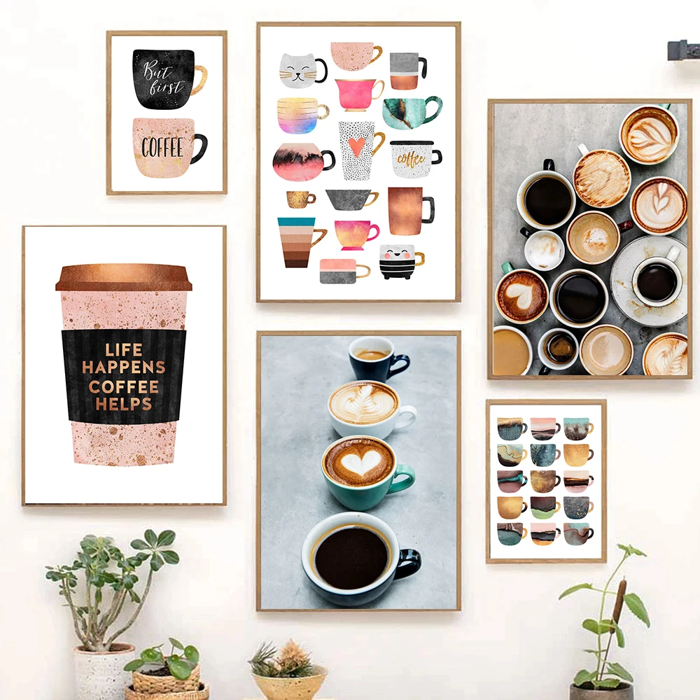 Nette Kaffeetassen Leinwand Malerei Nordic Latte Poster und Drucke Wand Kunst Bild für Cafe Home Decor Restaurant Küche Cuadros