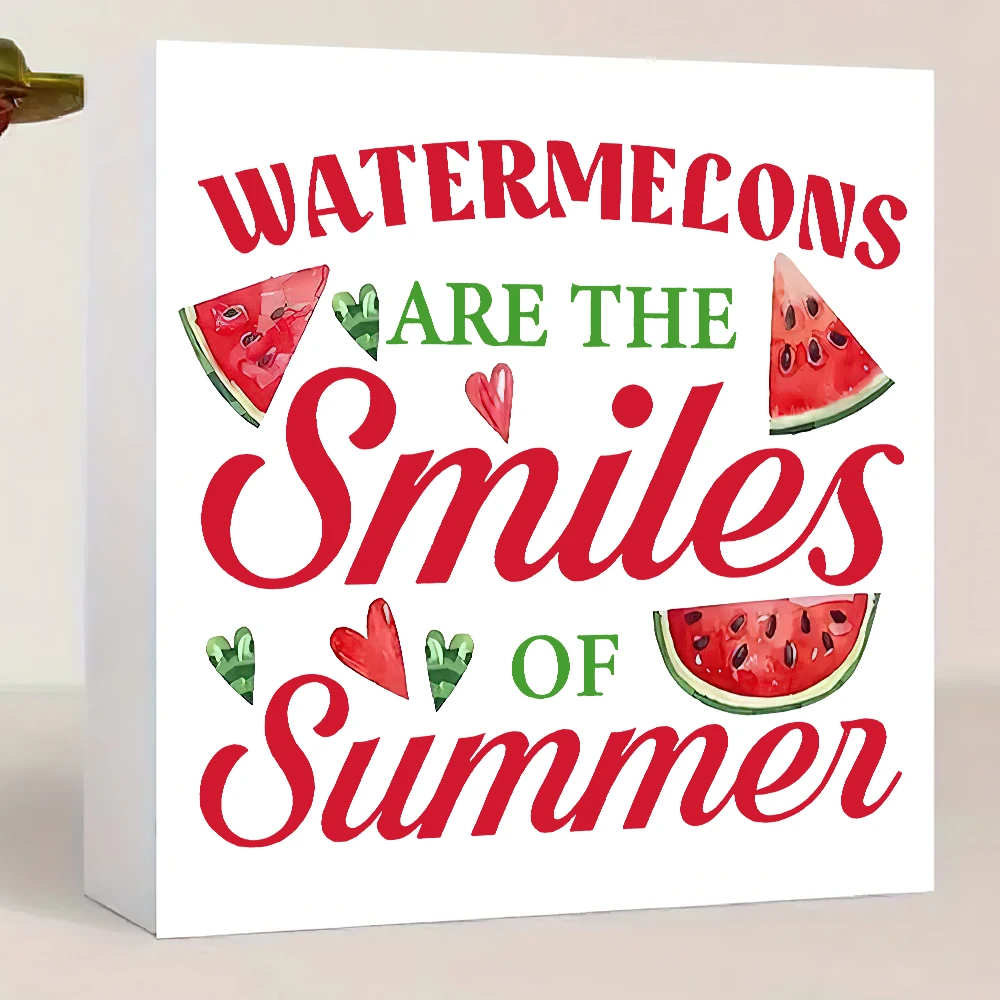 1 Stück Sommer-Wassermelonen-Smiley-Gesicht-Holzschild, Tischdekorationsplakette, perfekt für Zuhause, Café, Küche, Schlafzimmer und Feiertagsfeiern