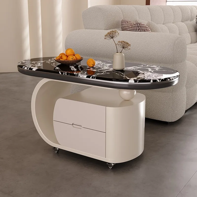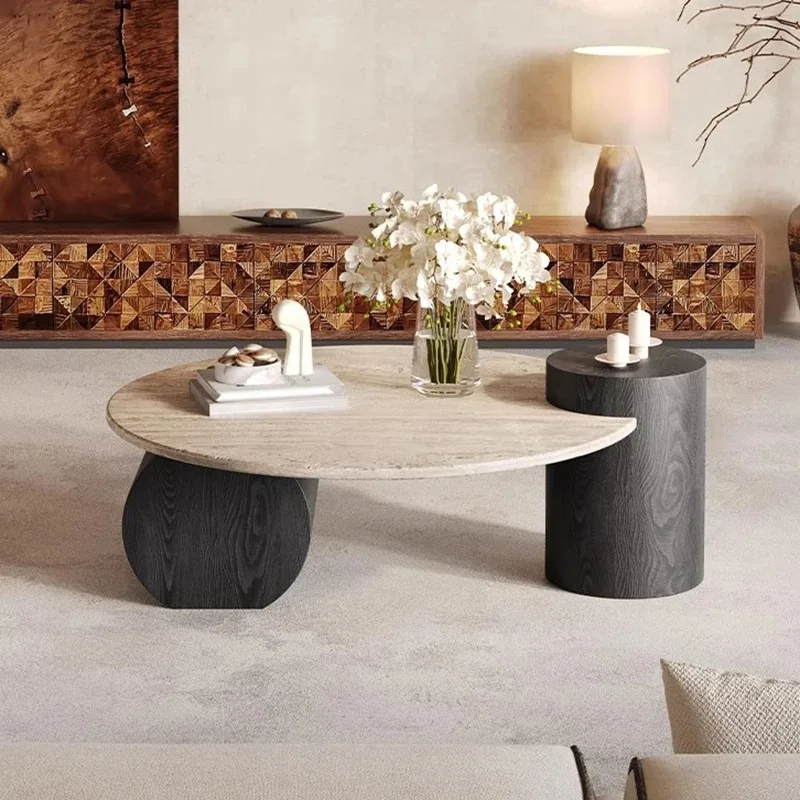 Luxuriöser Couchtisch aus Stein, nordisches französisches Retro-Design, kompaktes Ecktisch-Set für Wohnzimmer im kleinen Raum, hochwertiger Beistelltisch