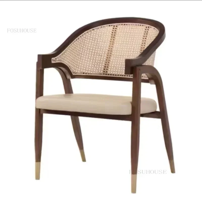 Nordic Retro Esszimmer Stühle Hause Möbel Massivholz Rattan Freizeit Stuhl Café Restaurant Sessel Designer Einzigen Sofa Stuhl F