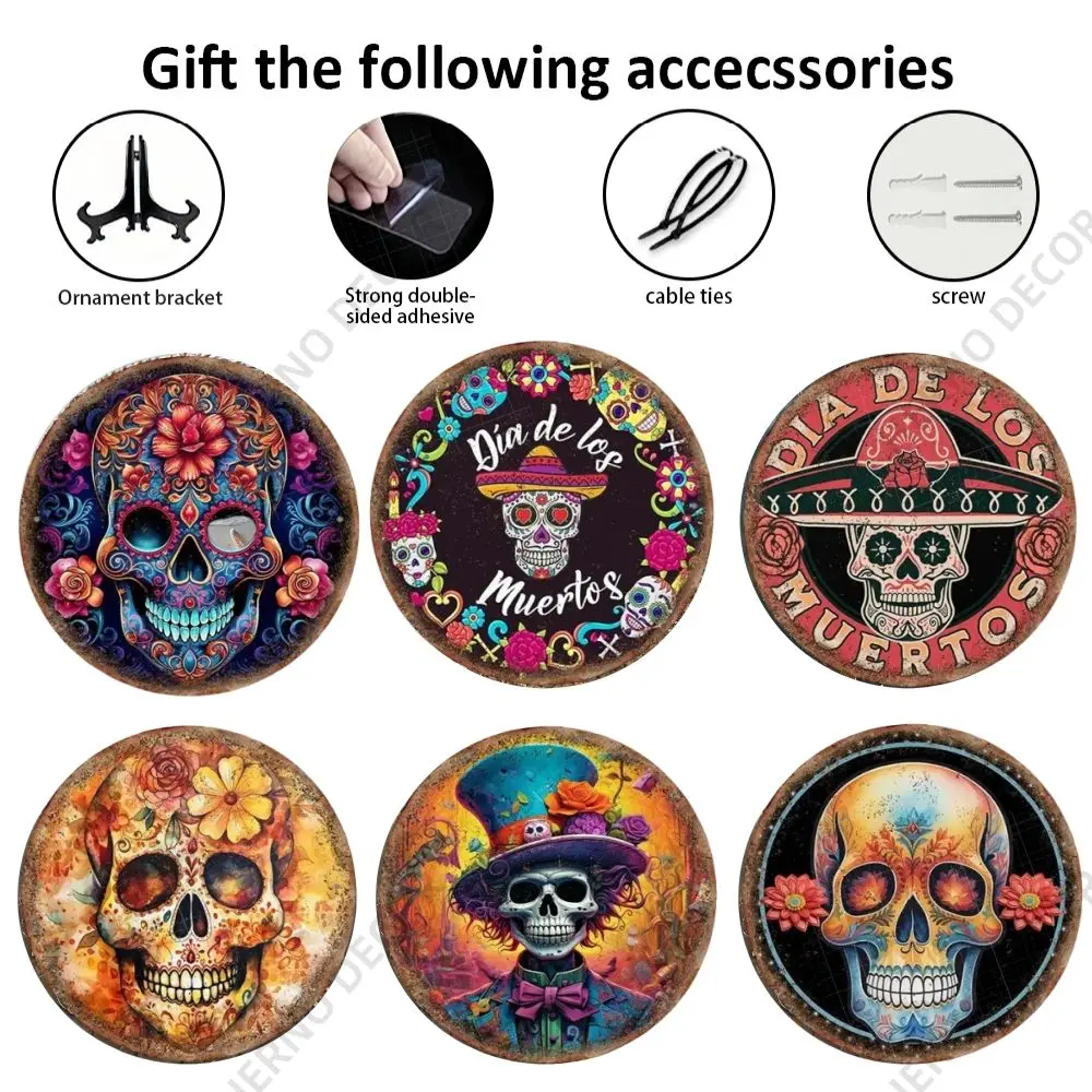 Halloween mexikanischen Schädel Thema Runde Metall Aluminium Zeichen Kunst Desktop dekorative Platten el día de los muertos Bar Cafe Club nach Hause