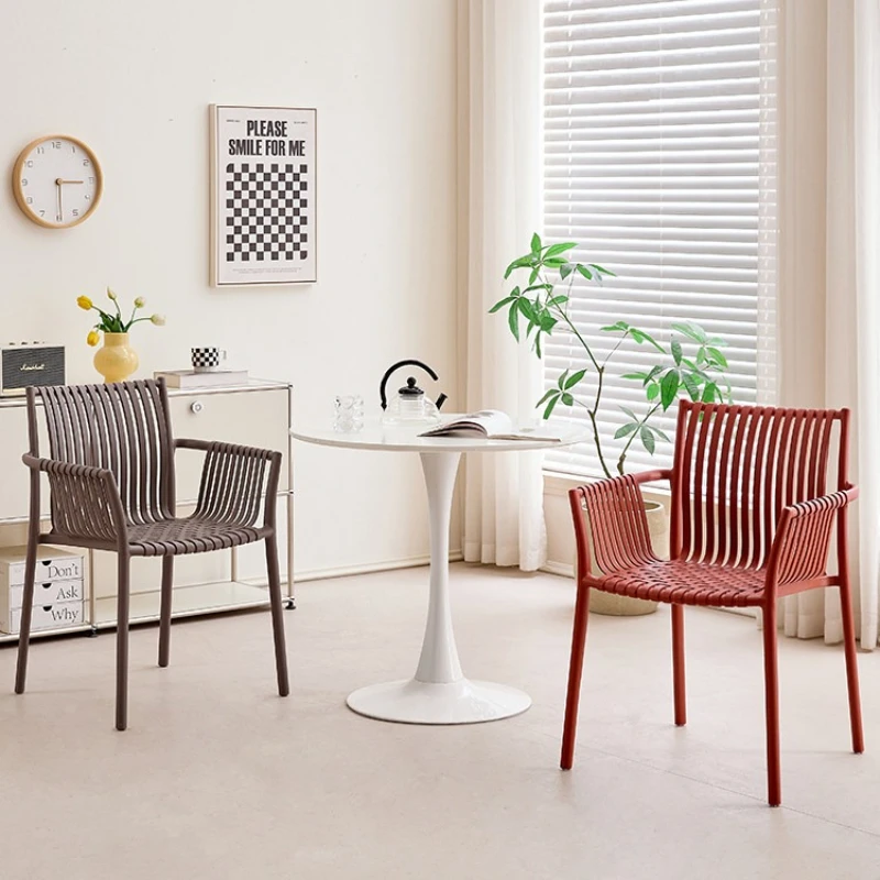 Esstischstuhl, Cafés, Freizeit, ausgehöhlter gestreifter Stuhl, Esstischstuhl für den Haushalt, Rückenlehnen, Kunststoffstühle für den Außenbereich