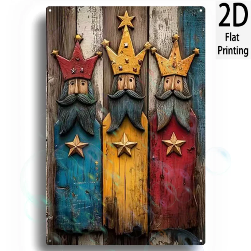 2D-Flattdesign, dekoratives Schild „Three King“ – Retro-Aluminiumschild, wasserdicht und staubdicht, geeignet für Häuser, Bars, Cafés,