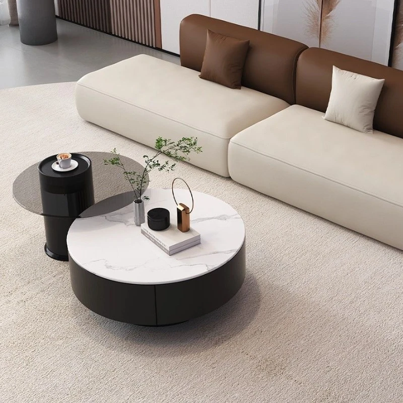 Eck-Luxus-Couchtisch-Organizer, Designer-Marmor, nordischer Couchtisch, rund, minimalistisch, Mesa De Centro De Sala-Möbel