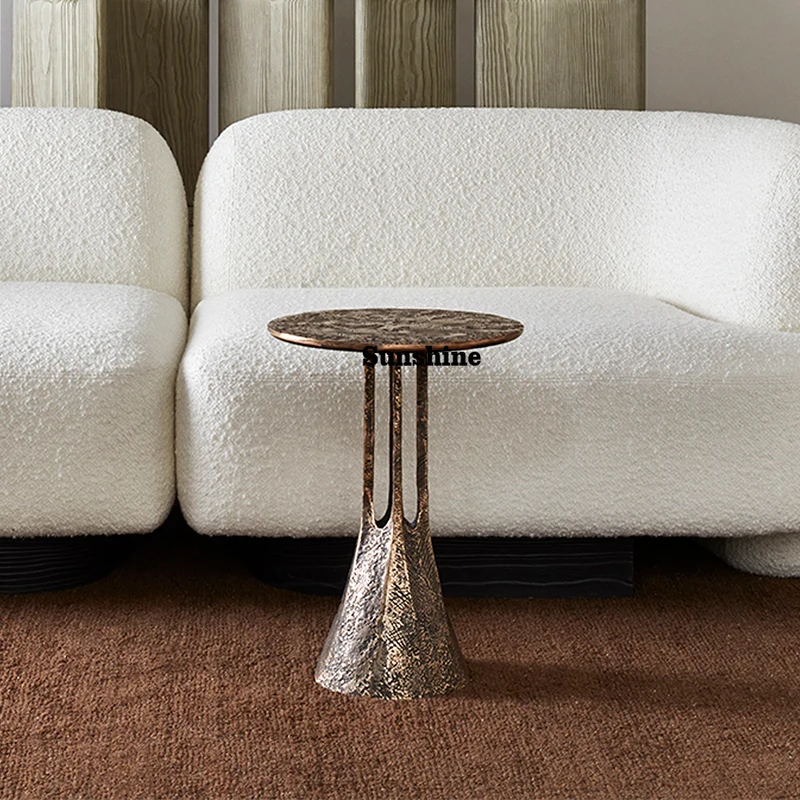 Kleiner runder Metall-Couchtisch im italienischen Design, antiker Messing-Beistelltisch für modernes Wohnzimmer