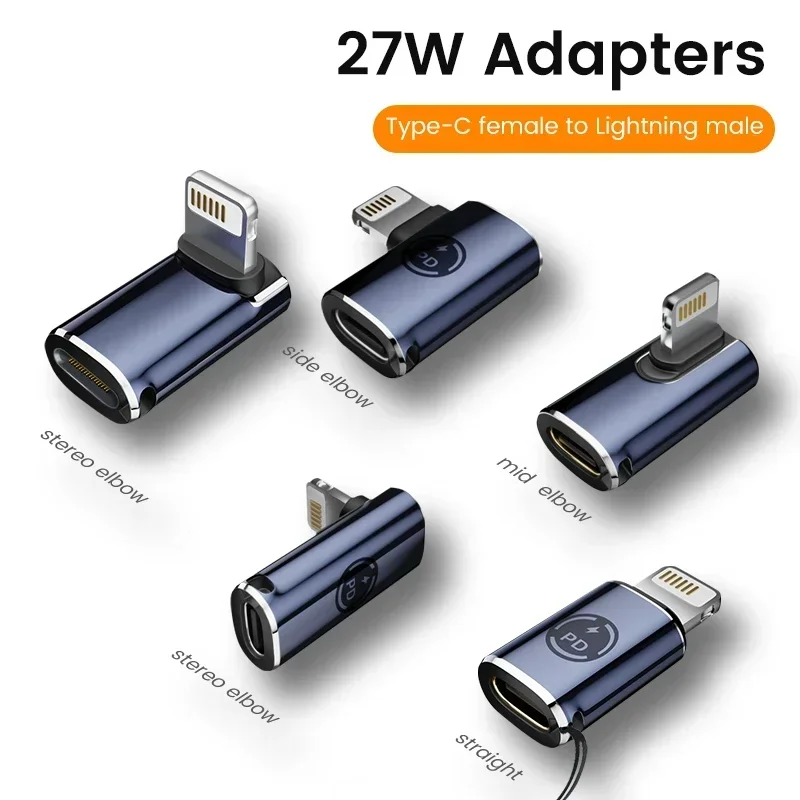 90-Grad-USB-Typ-C-auf-Lightning-Adapter, PD 27W, Lightning-Stecker auf USB-C-Lightning-Adapter für iPhone/iPad-Anschluss