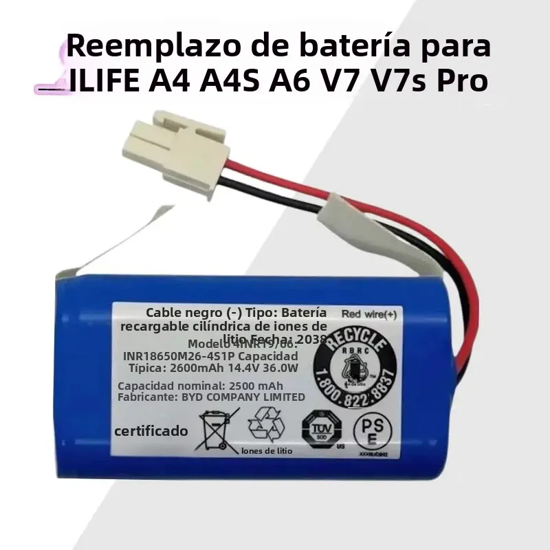 ILIFE Roboter-Staubsauger-Akku 14,8 V 2600 mAh Lithium 4S1P M26 INR18650 Kompatibel mit A4 A4s V7 V7s plus A6 A9