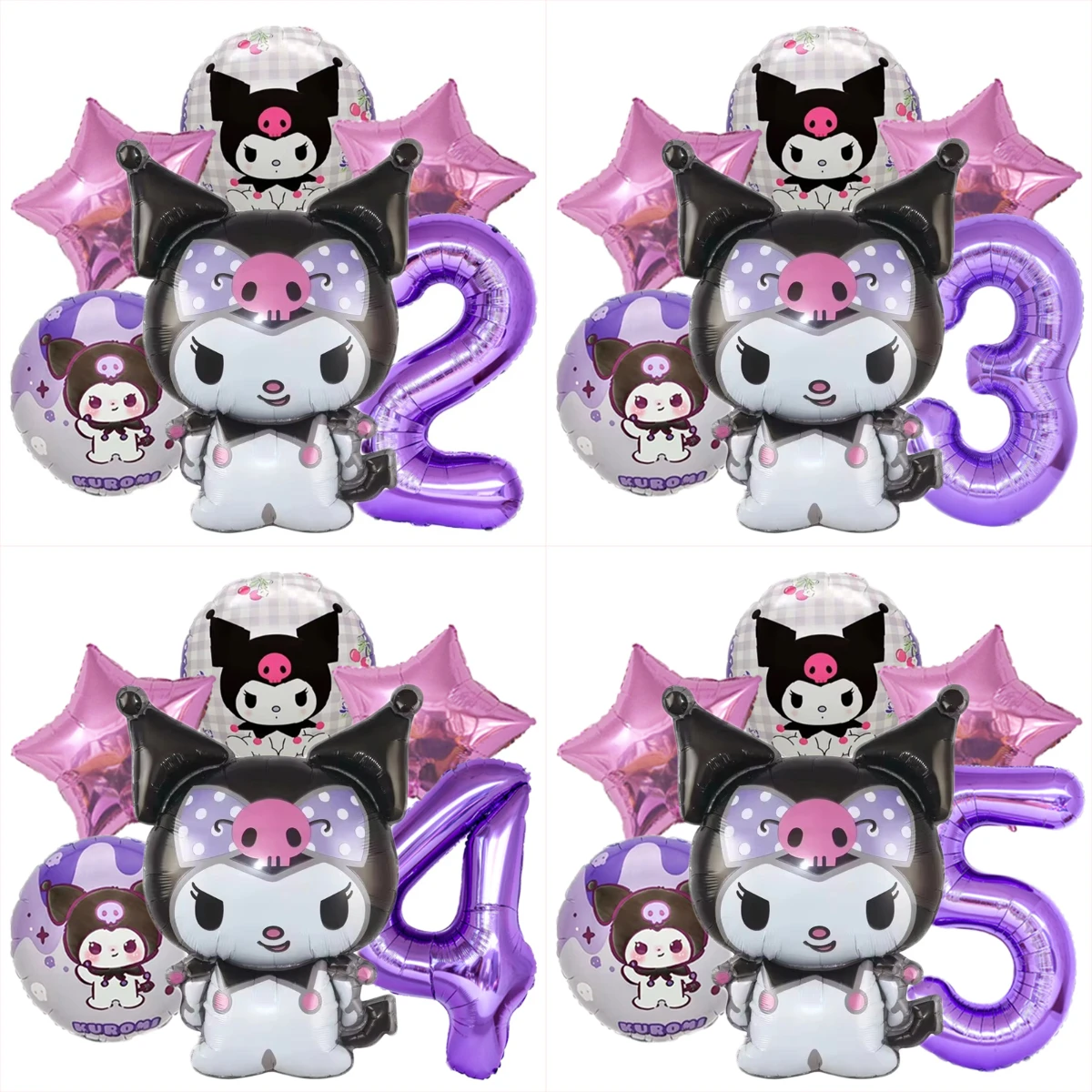 6 teile/satz Cartoon Kuromi Y2K Aluminium Film Ballon Sanrio Nette Kinder Geburtstag Set Mädchen Geburtstag Dekorieren Party Geschenke Prop