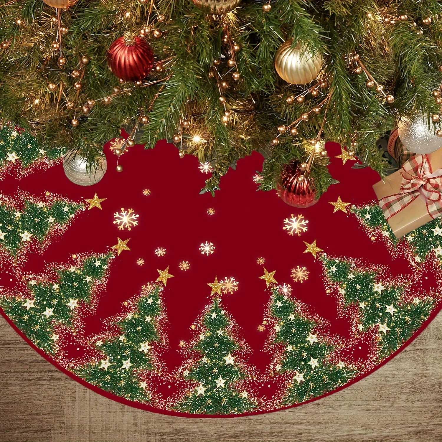 VIKAMA Weihnachtsbaumrock, rote Schneeflocke, Weihnachtsbaum, kariert, Weihnachtsfeier, Weihnachtsbaummatte, Weihnachtsbaumschmuck