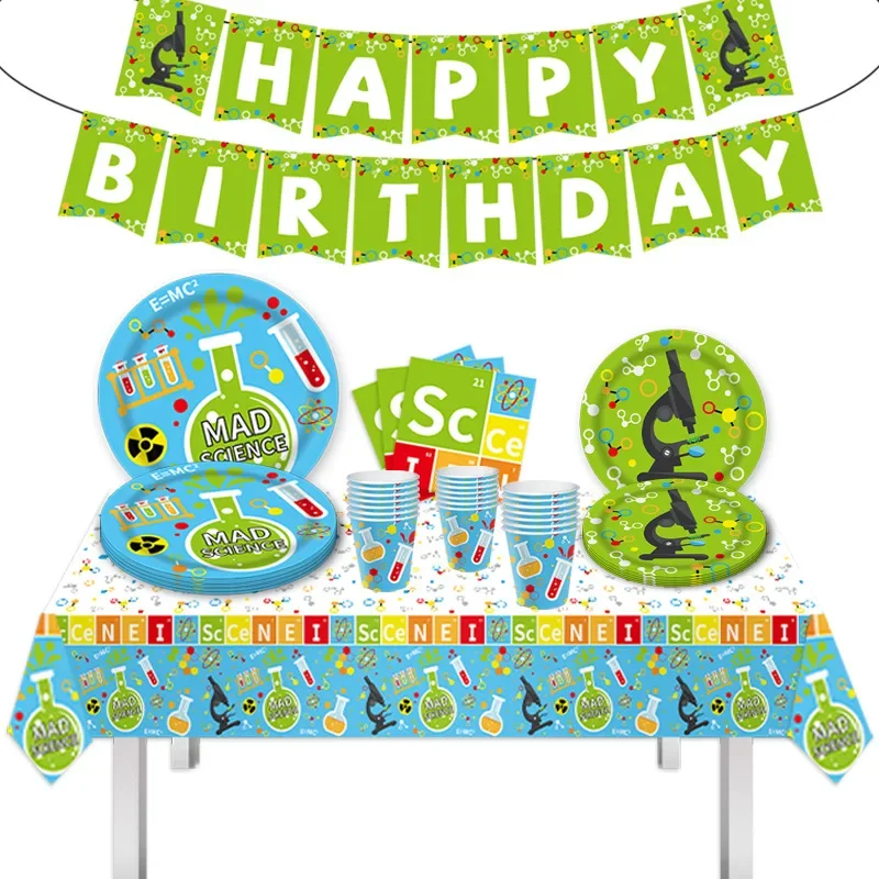 20-teiliges Chemie-Experiment Lernset Wissenschaftsthema Einweggeschirr Geburtstagsparty-Set Feiertagsdekoration Zubehör