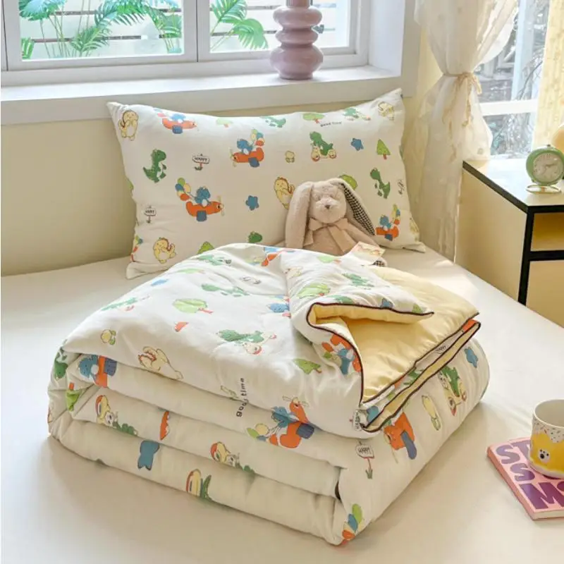 Niedliche Cartoon-bedruckte dünne Steppdecke für Kinder, Studenten, Sommer, Doppelgarn, Sojabohnen, Klimaanlage, Tröster, leichte, kühlende Decken