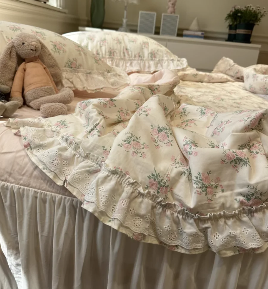 Blumenmuster, Prinzessinnen-Schmusetuch, Blumenmuster, Rüschen-Design, Bettdecken, Bettdecke, Decke, Königin, eleganter Gartenstil