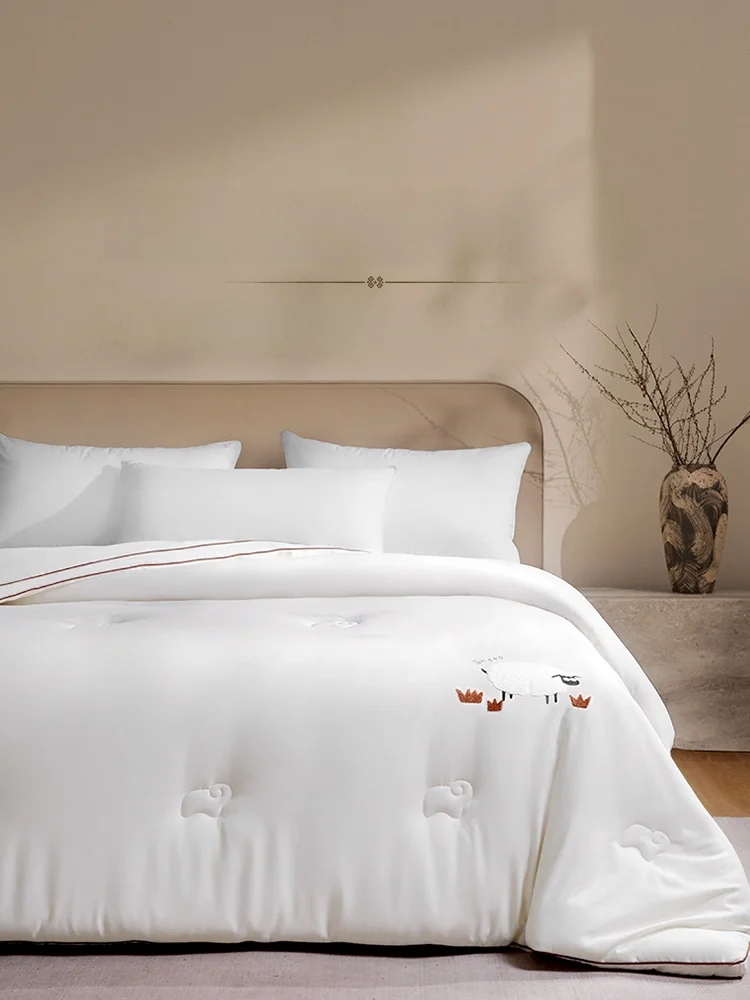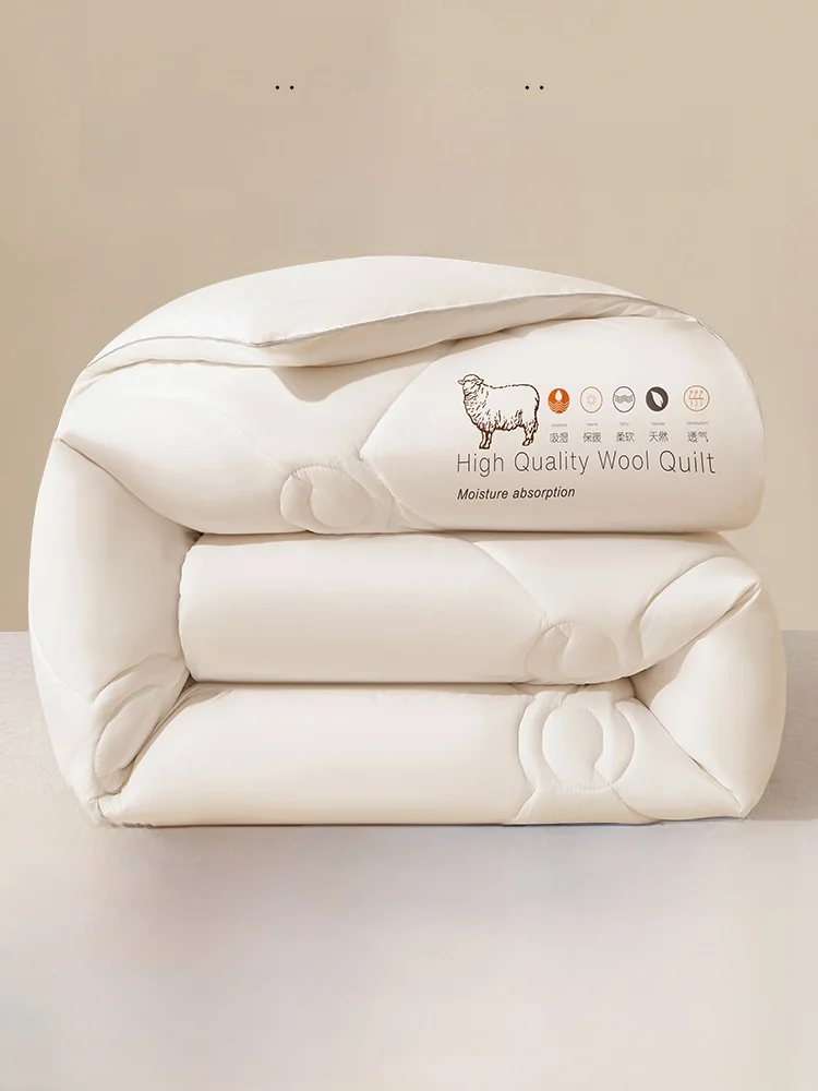 Verdickte Decke aus reiner Baumwolle und Wolle, doppelte Größe, warm, für Frühling und Herbst und Winter, 2-Meter-Steppdecke mit australischem Wollkern