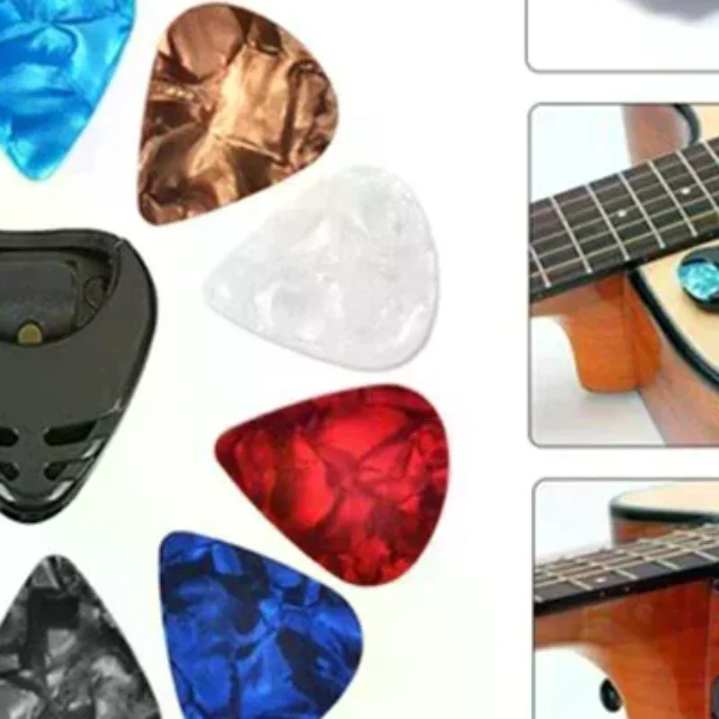10PCS Zufällige Farbe Gitarre Picks & Gitarre Pick Halter Stick-on Halter 0,46/0,71/1,0 MM Akustische gitarre Pick Bernstein Künstlerische