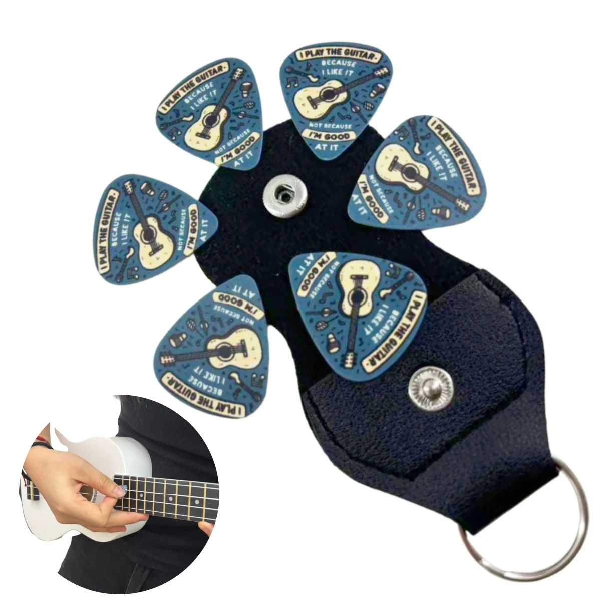 6 Stück Original Sound Gitarrenplektren, doppelseitig bedruckte Gitarrenplektren mit Schlüsselanhänger-Holster für Gitarren- und Ukulele-Musikliebhaber