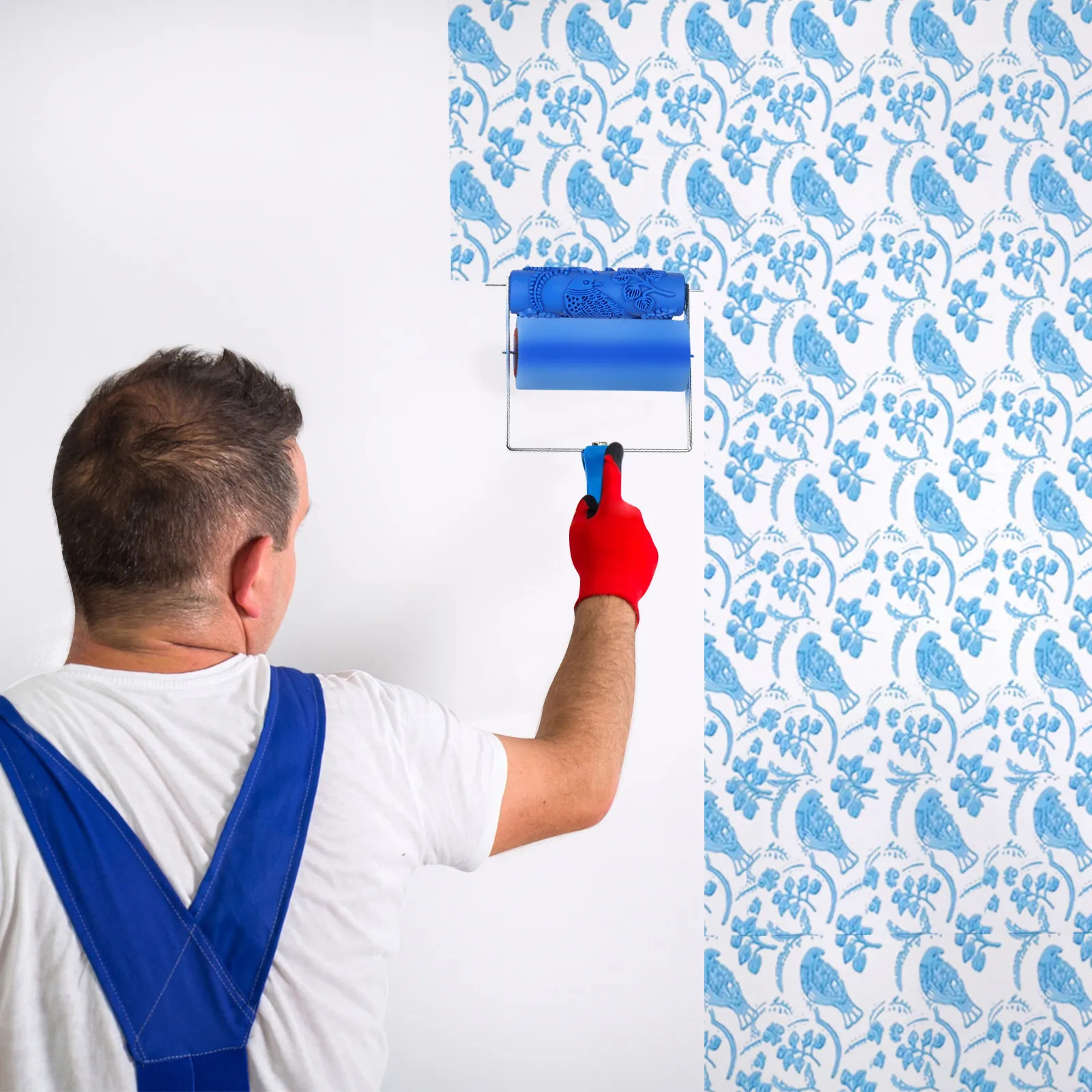 Blaue Rollenabdeckung, tragbares Diy-Werkzeug für Blumenmuster, Wanddekoration, Empaistic Painting Roller, strukturierter Farbroller