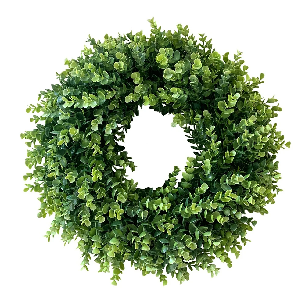 40 cm künstliche Eukalyptus-Kränze, Frühling und Sommer, runder künstlicher grüner Kranz für Wand, Fenster, rustikales Zuhause, Outdoor, Innenbereich, Dekoration