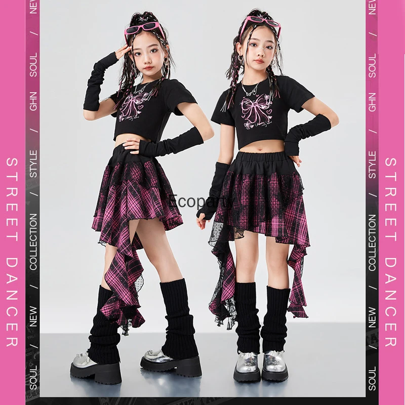 Kindermode Jazz-Tanzkleidung Kpop Hiphop Performance-Kleidung für Mädchen Schwarz Pink Shuffle Outfit Kinder Streetwear Y2k Kostüm