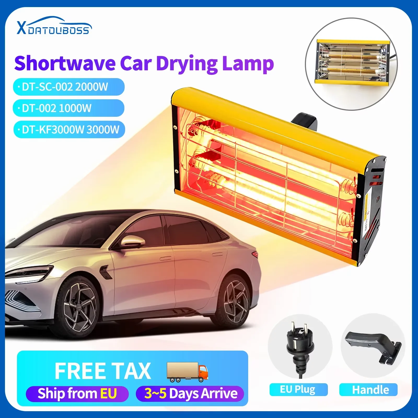 DATOUBOSS 2000 W 110 V/220 V tragbare Infrarot-Lack-Härtungslampe, tragbare Kurzwellen-Heizlicht, Verwendung für Karosserie-Reparatur-Werkzeug