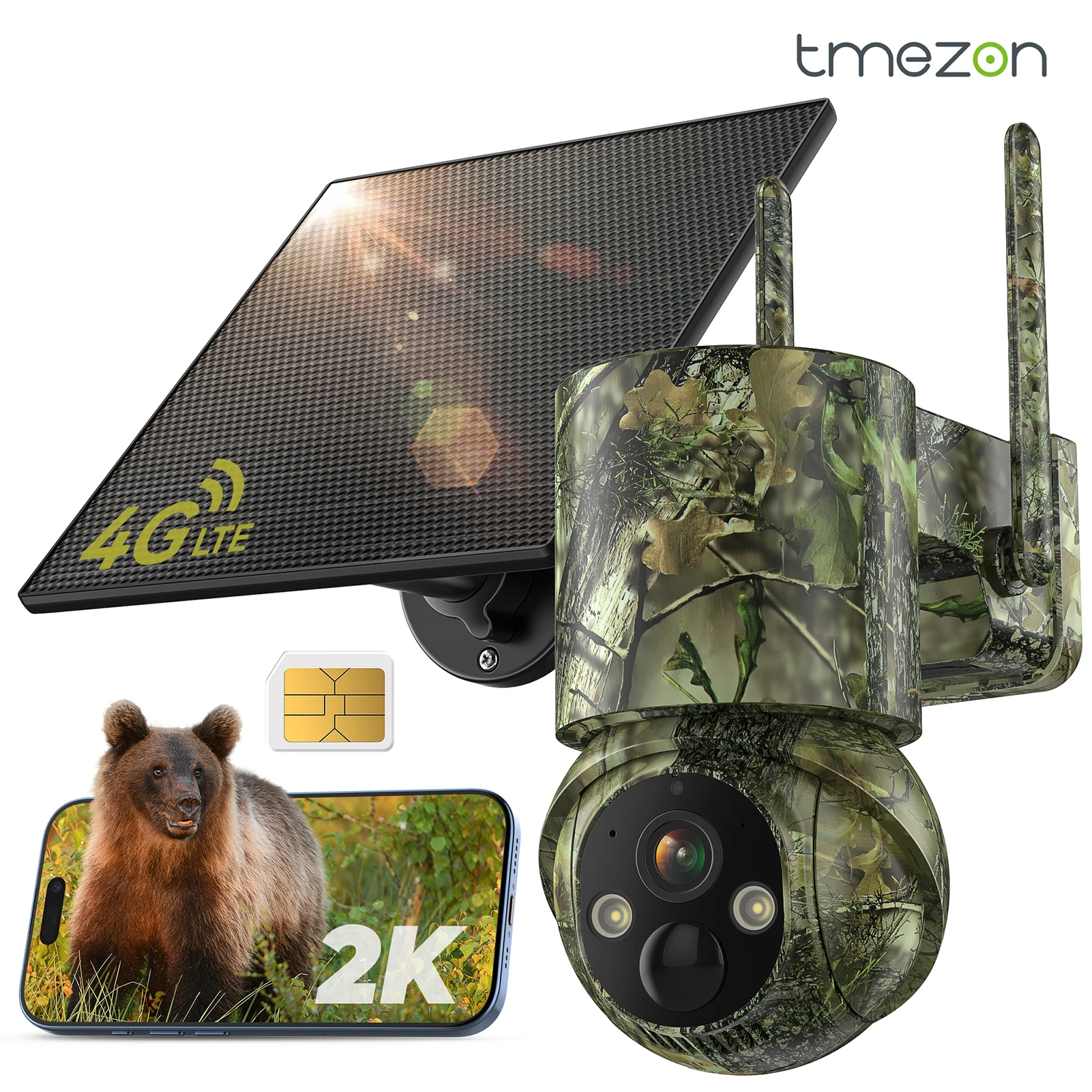 4G LTE Wildkamera mit App, 2.7K Solar-Jagdkamera mit SIM-Karte, Fotofalle, PIR-Bewegungssensor, Nachtsicht