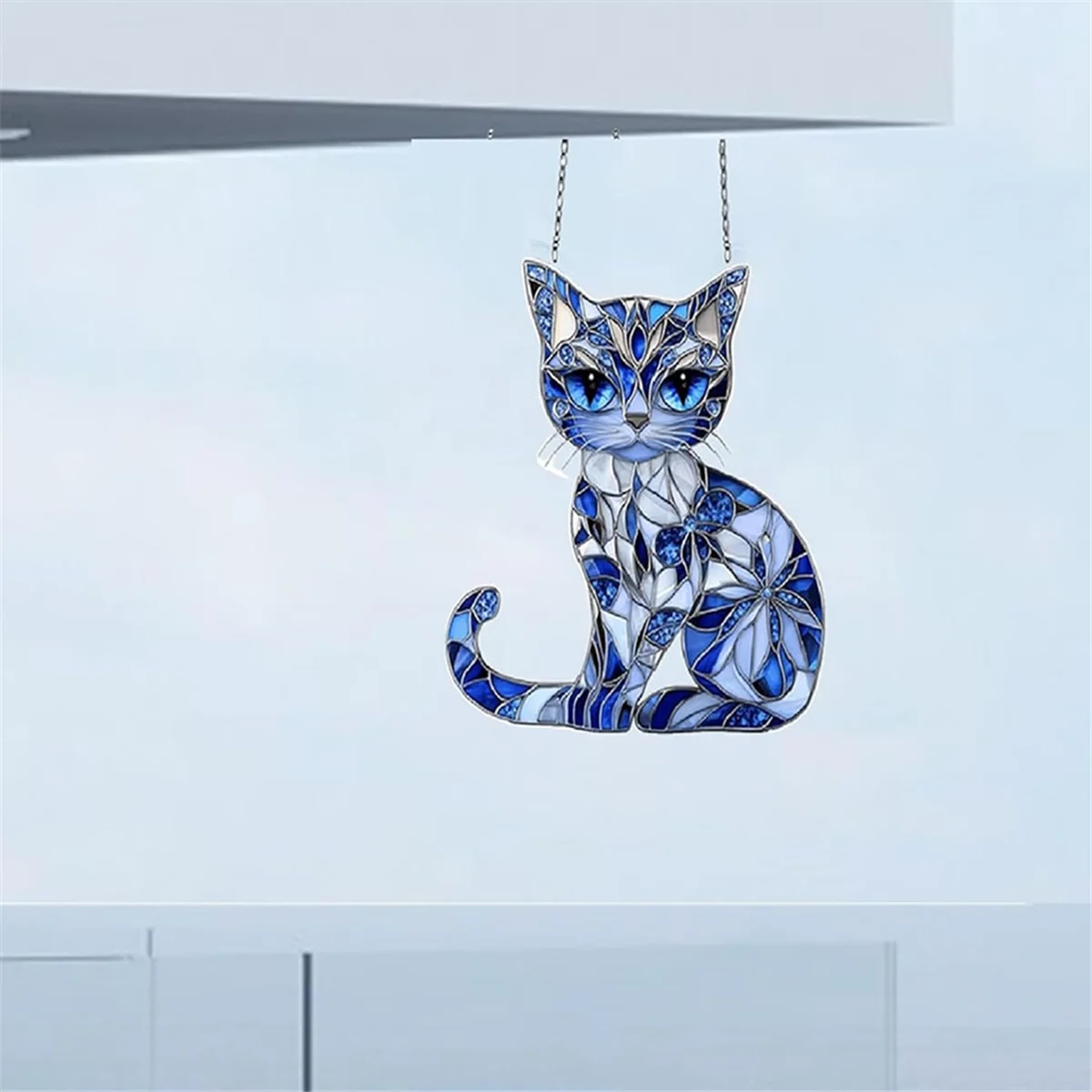 【2025-Electronics】{8 Zoll Katzen-Weihnachtsbaum-Sonnenfänger-Ornament, Acryl-Katzenpaar mit Blumen, Sonnenfänger, Fenster-Hängedekoration