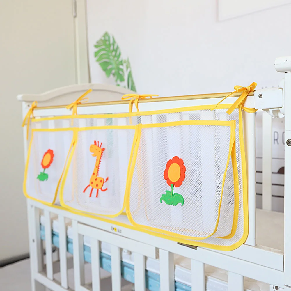 Cartoon-Babybett-Aufbewahrungstasche mit 3 Fächern, Windel-Organizer mit Großer Kapazität, Hängetasche für Bettseiten, Bettzeug und Neugeborenenartikel