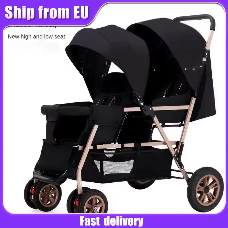 EU STOCK Twin Kinderwagen zwei Sitze faltbare Kinderwagen Kinderwagen mit Regenschutz Hohe und niedrige Sitze Freeshipping