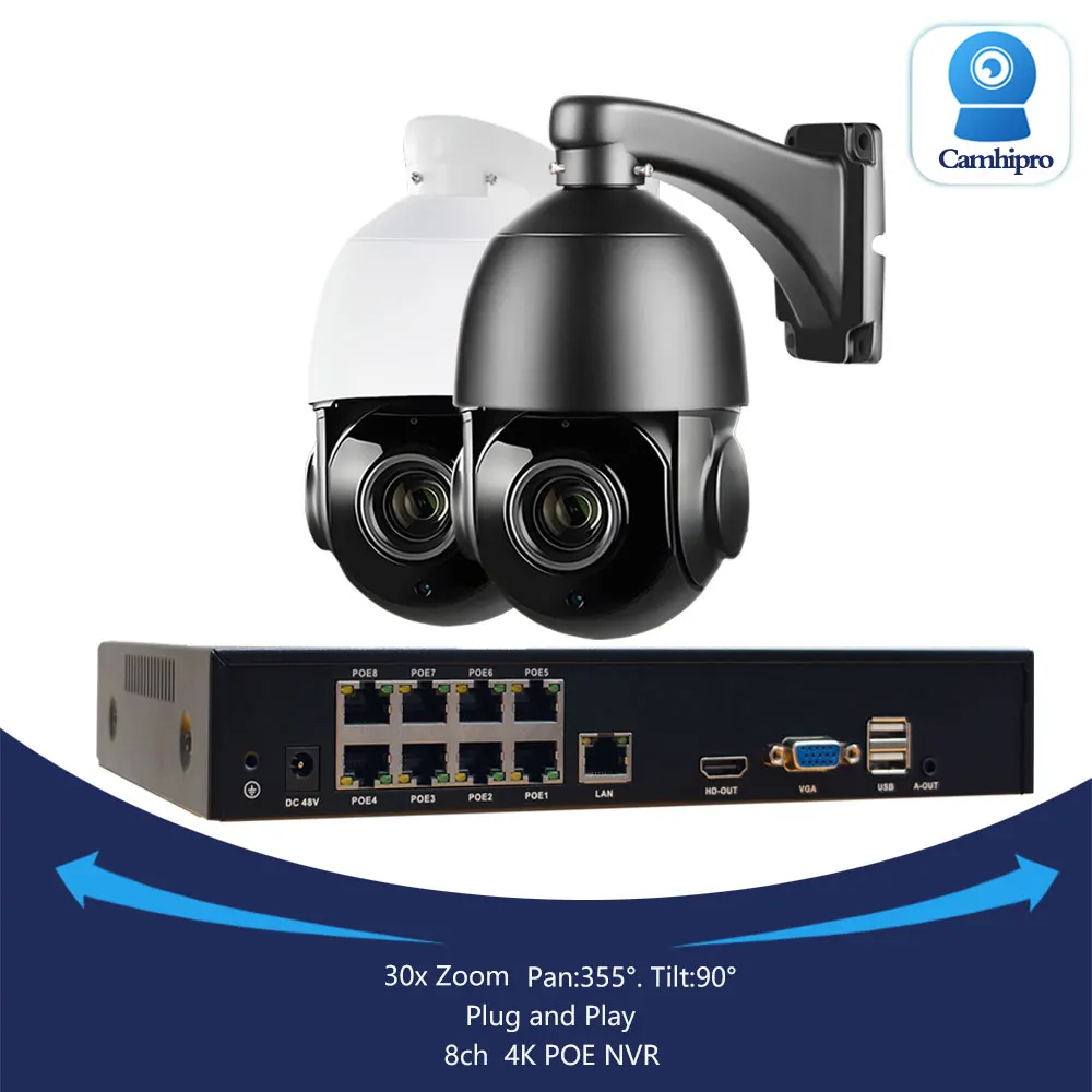 4K 8MP Sicherheits-PTZ-Speed-Dome mit 30-fachem Zoom, Überwachungskamera, POE, 5MP, Zwei-Wege-Audio, IR 80m, 8-Kanal POE NVR Kit, Plug & Play