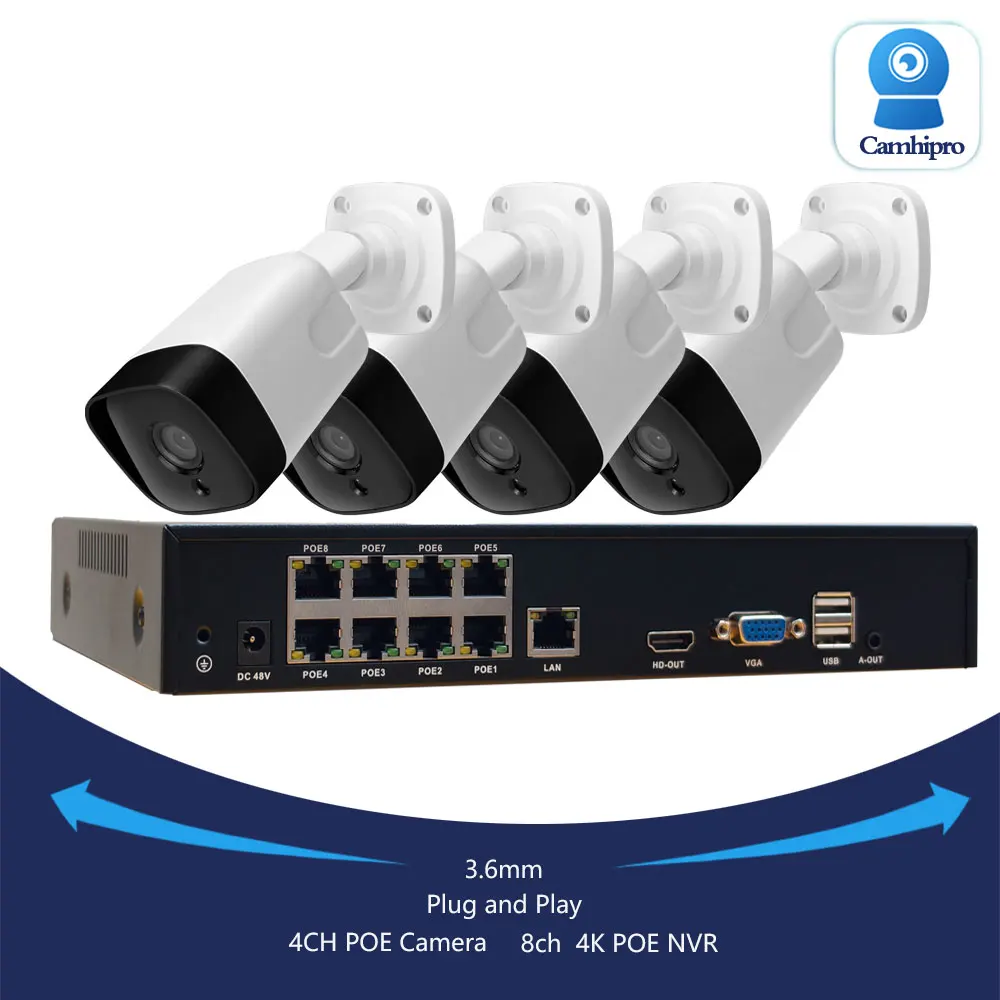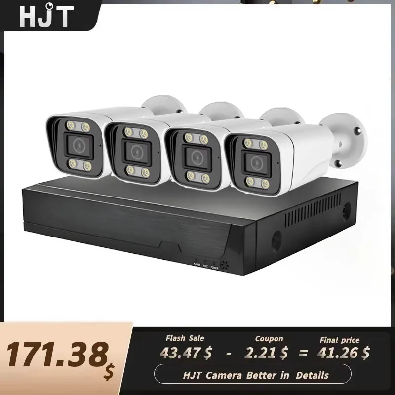 HJT 4K 5MP Sicherheitssystem NVR-Kit Ultra HD 8MP POE Metall Wasserdicht Audio Farbnachtsicht CCTV Videoüberwachungskameras
