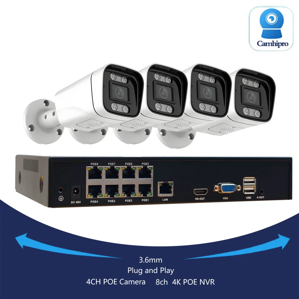 4K 8MP Sicherheitsüberwachungs-Video-POE-System 5MP Kamera Zwei-Wege-Audio Vollfarb- oder IR-Nachtsichtversion 8CH POE NVR Plug-and-Play