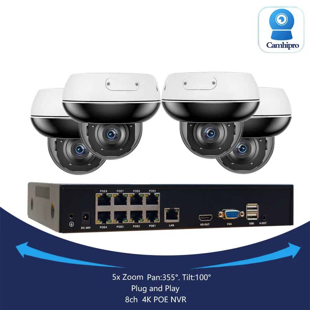 4K 8MP 8CH POE NVR Kit Plug-and-Play Sicherheits-PTZ-Dome-Kamera mit 5-fach Zoom, Überwachungskamera, POE, 5MP/8MP, Zwei-Wege-Audio, für den Außenbereich