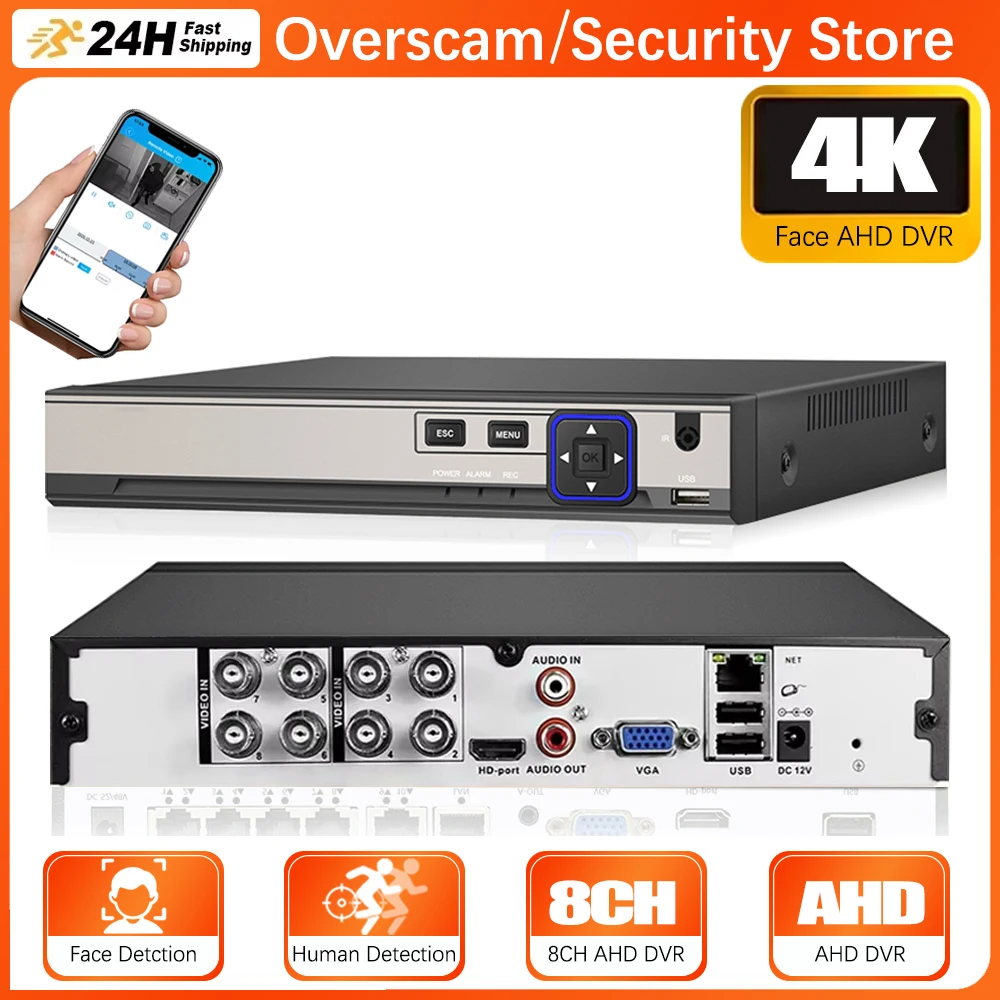 Overscam 4K 8MP AHD DVR 4/8CH Gesichtserkennung CVI TVI CVBS IP Digitaler Videorekorder DVR Heimsicherheitsschutz XMEYE System