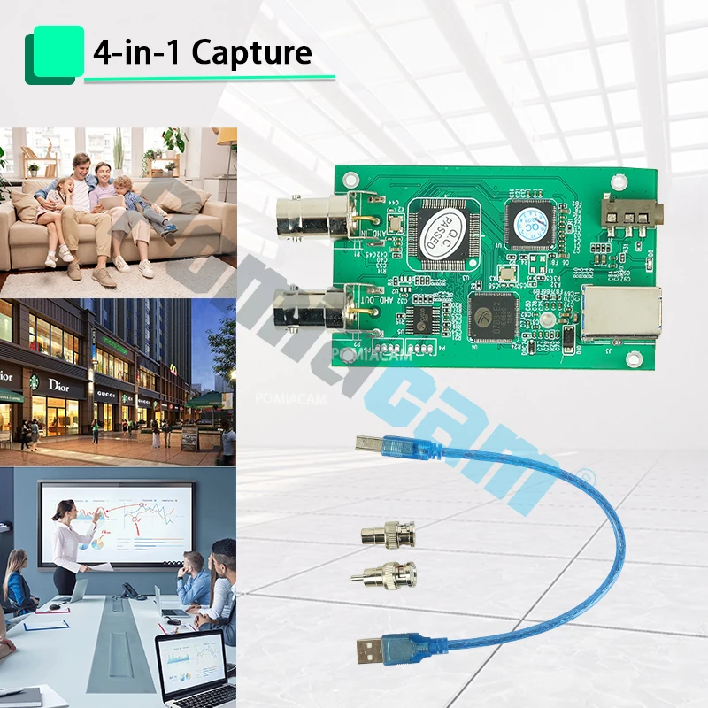 4-in-1-Aufnahme von AHD-, CVBS-, TVI- und CVI-Kamerasignalen in USB-Signalen, Videos zum Sammeln und Aufzeichnen durch Computers. Kamerasignale
