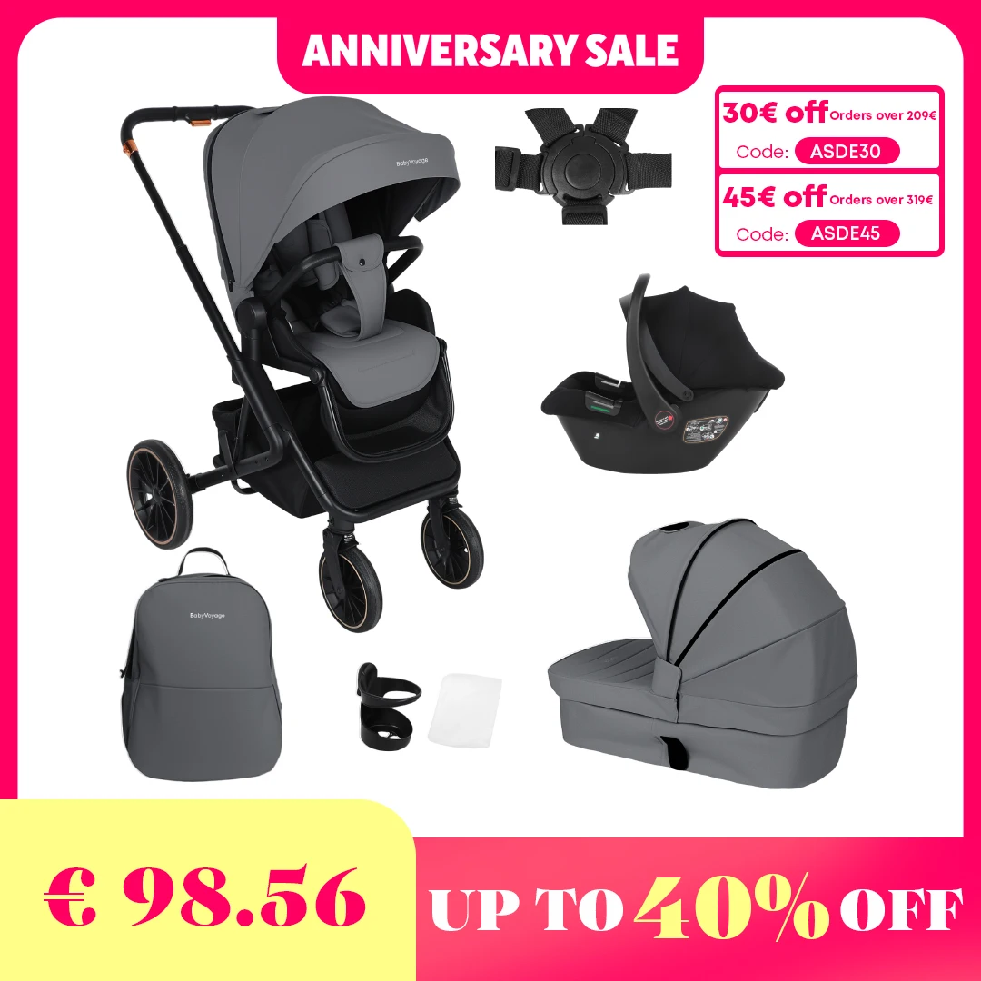 EU-Versand: 4-in-1 Kinderwagen mit ISOFIX-Basis, Kindersitz und luxuriösem, tragbarem, leichtem Neugeborenen-Kinderwagen.