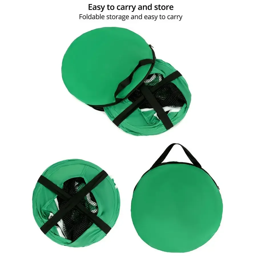 Golf-Übungsnetz mit defektem Netzgewebe, 2 Golfmatten, 12 Trainingsbällen und Zubehör für den Ballhalter.
