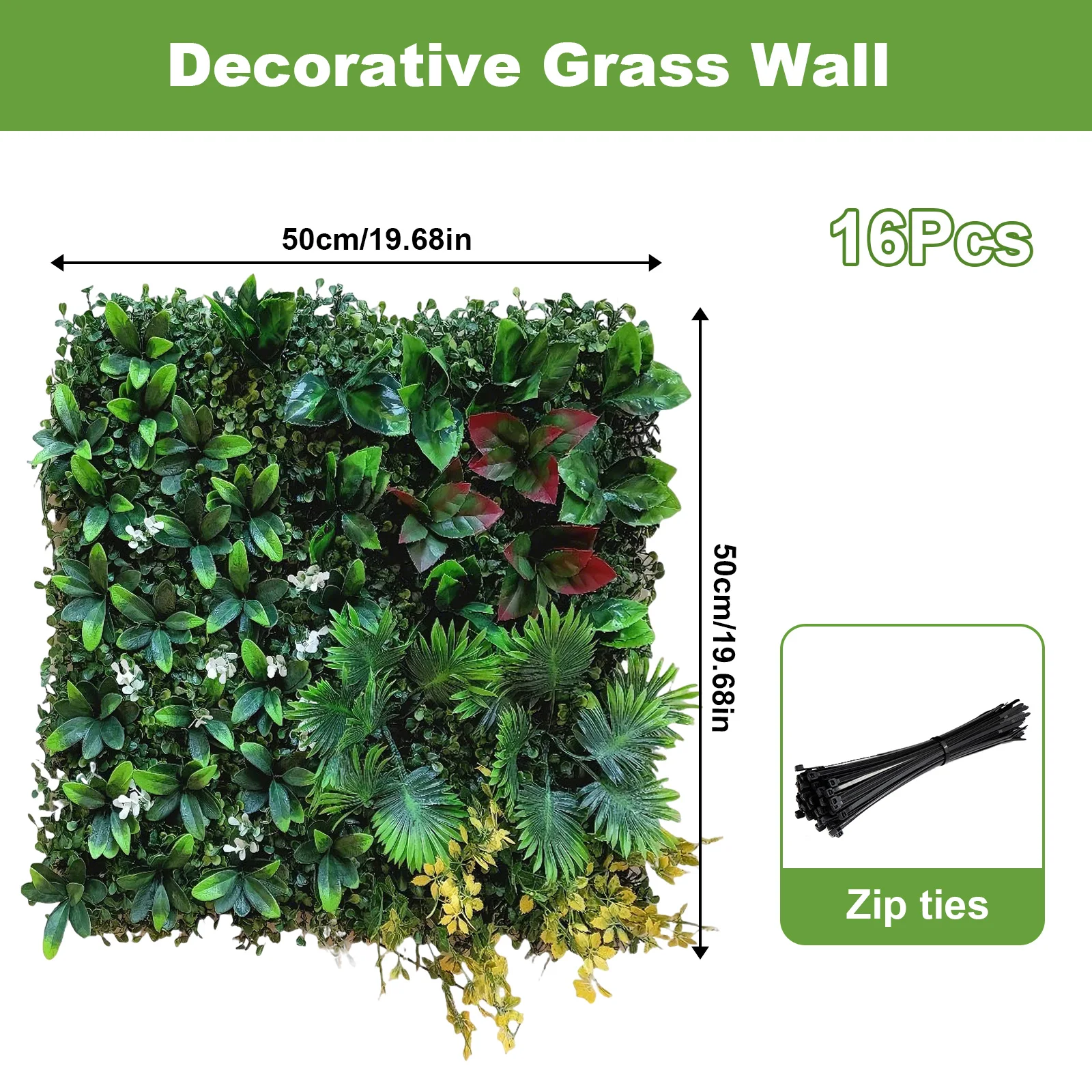 16 Stück, künstliche Graswandpaneele, künstliche Grasmatten, 50 x 50 cm, UV-beständiger Sichtschutz für Balkon, Gartendekoration, einfache Installation