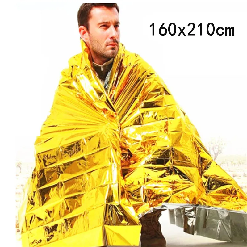 1 Stück 160*210cm Goldene Notfalldecke Wasserdichte Wärmedecke Camping-Überlebensausrüstung Lebensrettende Erste-Hilfe-Isolationswerkzeuge
