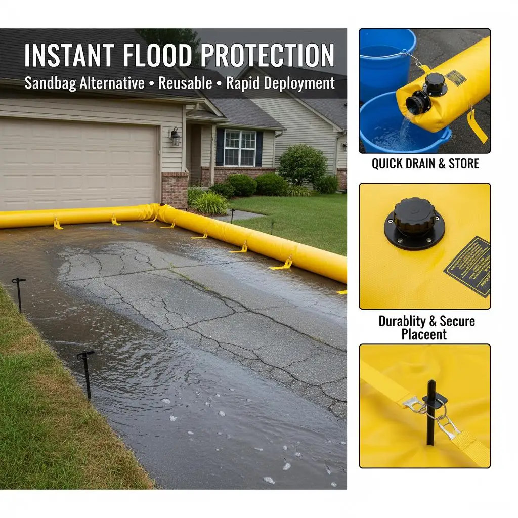 Wasseraktivierte Hochwasserschutzbarriere, 8er-Pack 305x21 cm, wiederverwendbare Wasseraufnahmeschutzbarriere