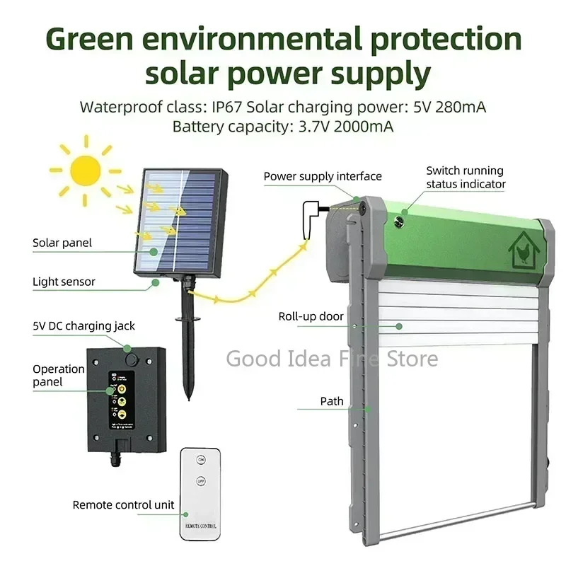 Intelligente automatische Hühnerstalltür mit 4 Steuermodi, solarbetrieben, mit Batterie-Backup