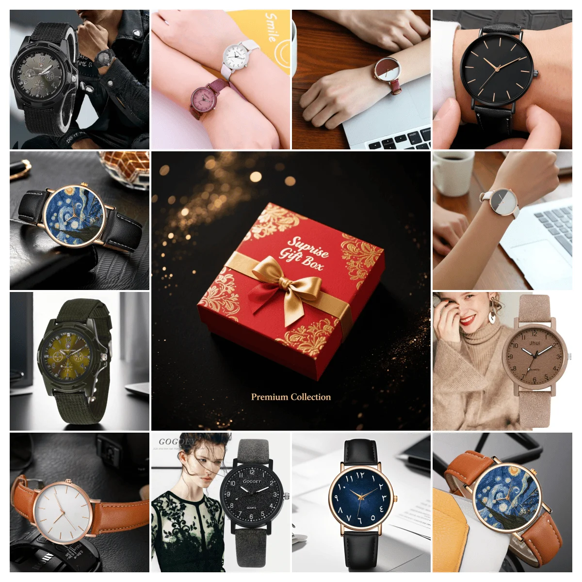 1x modisches, sportliches Quarzuhr-Set | Überraschungsgeschenkelement (keine physische Box)