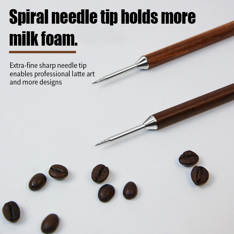 Edelstahl Kaffee nadeln Kaffee ziehen Blume Nadel Espresso Latte Dekor Kunst Stift Holz nadel Barista Werkzeuge Zubehör