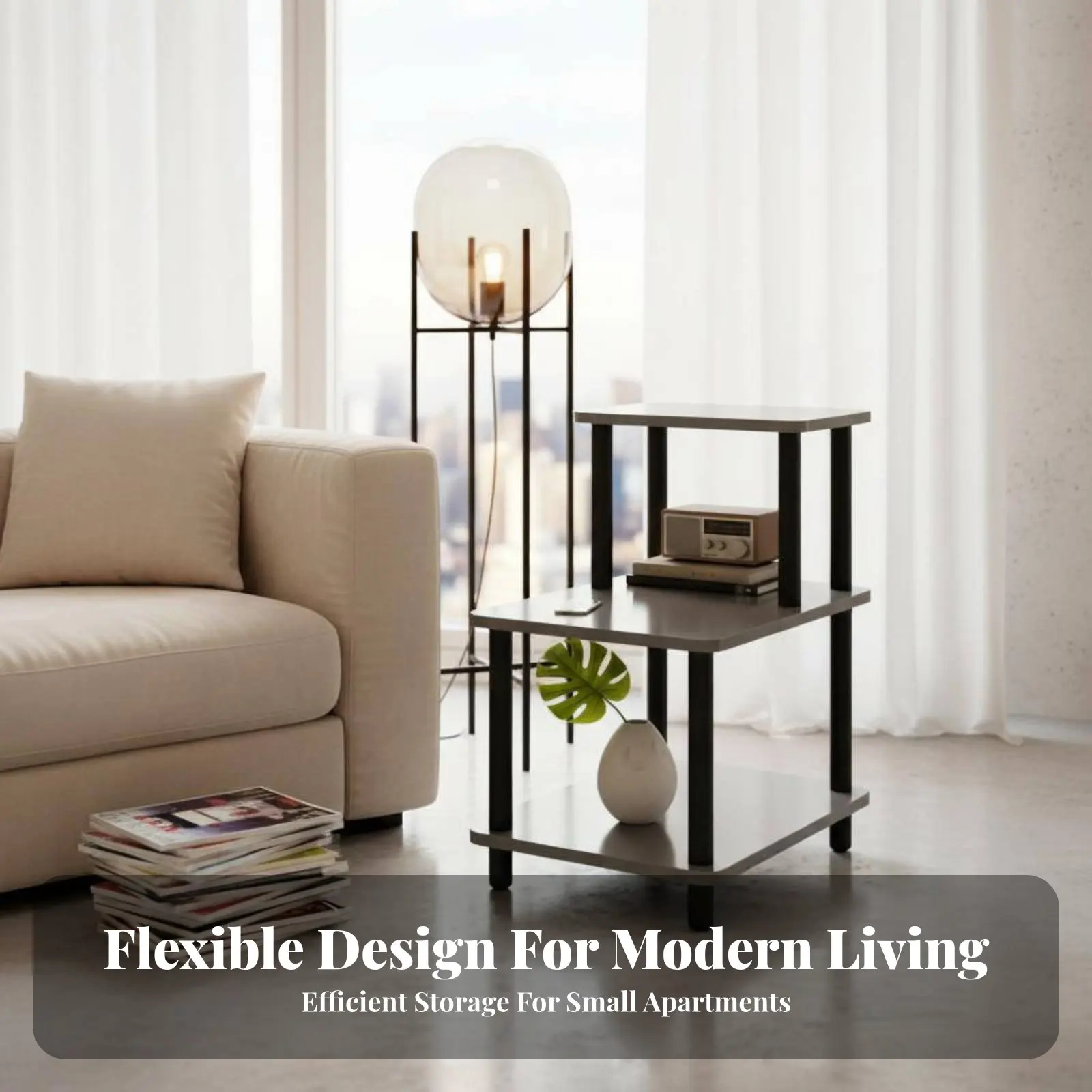 Kleeblattförmiger Massivholz-Beistelltisch, schmaler Walnuss-Beistelltisch für die Kaffee-Ecke, schmaler Nachttisch für kleine Räume mit kugelförmigem römischem Design