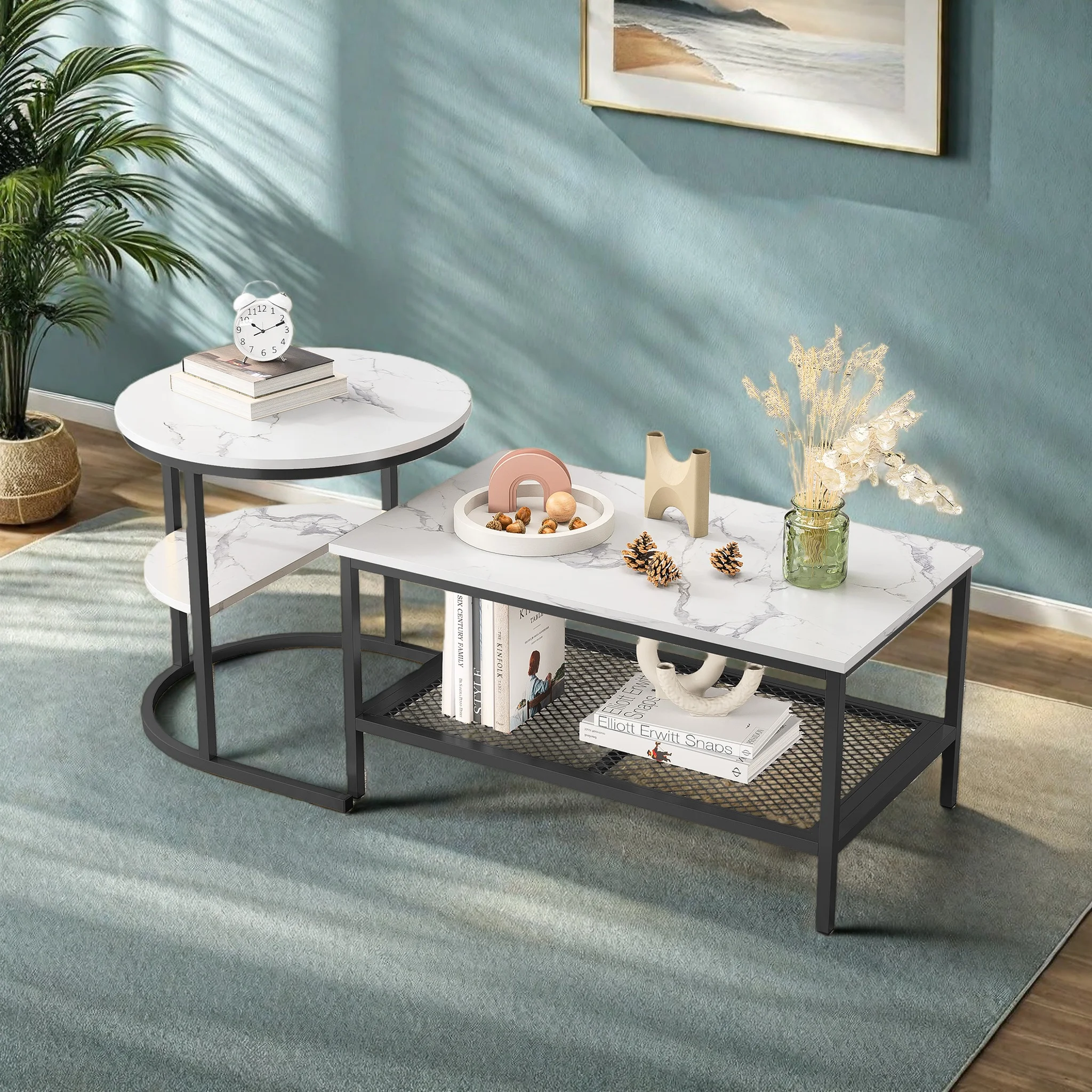 Anajqaqia Wohnzimmer-Couchtisch-Set mit Stauraum-Design - Runde und Rechteckige Beistelltische