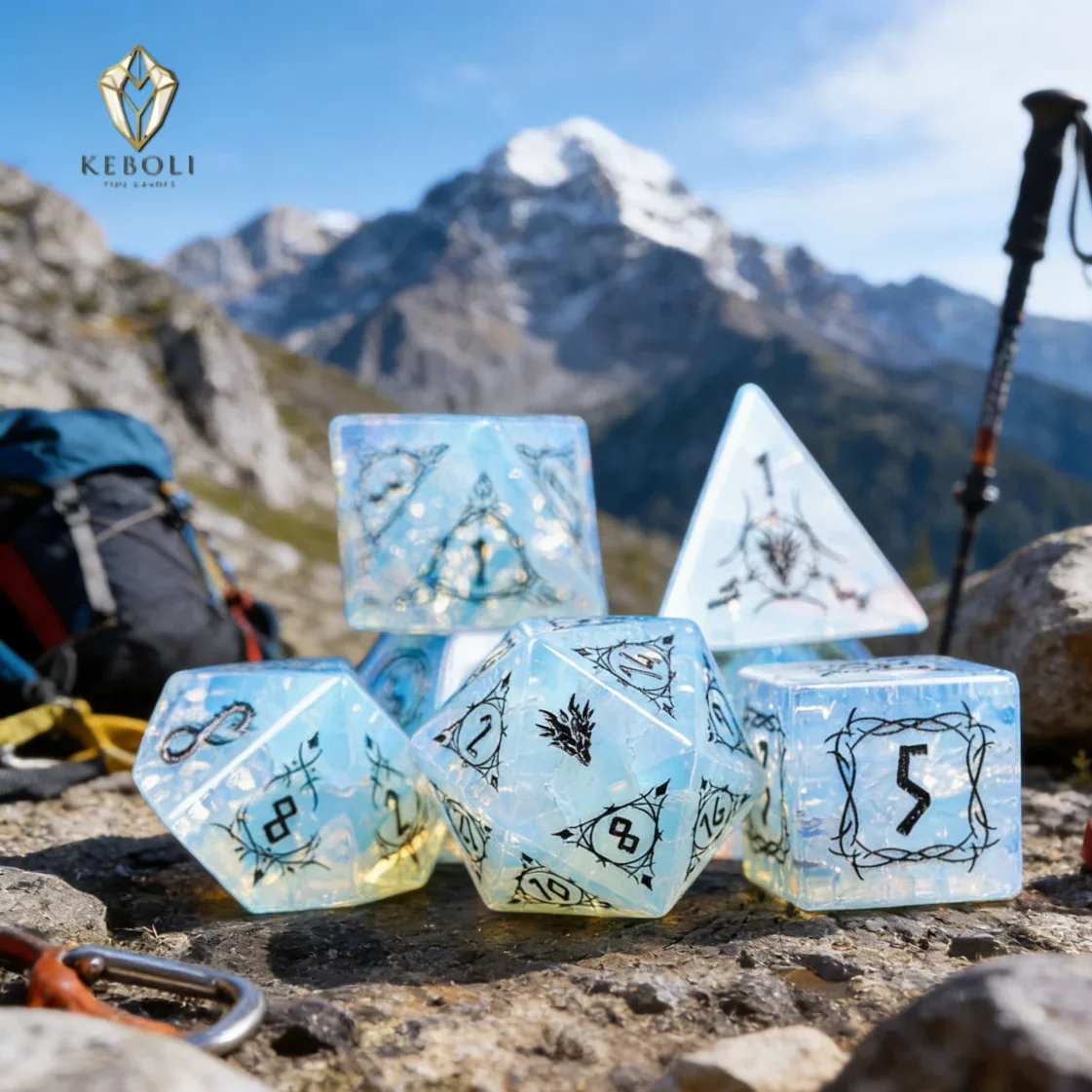 Geschliffene Opal-Würfelsets mit Drachenmuster, Polyedrische Würfel D4 D6 D8 D10 D12 D20 für Dungeons and Dragons, RPG, MTG, Tischrollenspiele