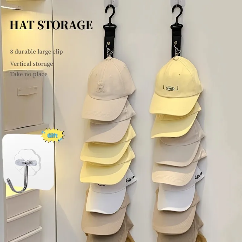 1 x Baseballkappen-Aufbewahrungsorganisator, mit 8 Clips, Schrank-Hängekappe, Organizer, Baseballkappen, Golfkappen, Aufbewahrungshaken