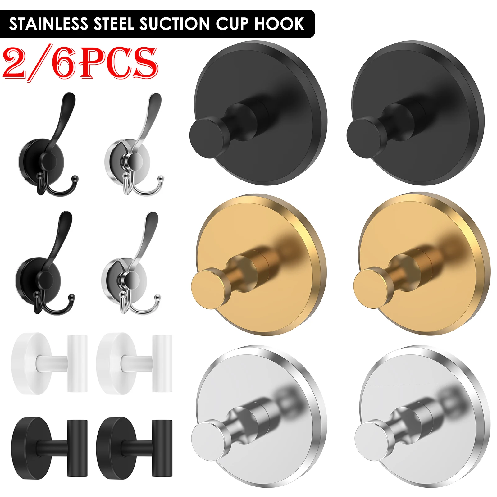 2/6Pcs Edelstahl Saugnapf Haken Punch-freies Wiederverwendbare Wasserdichte Rostfrei Handtuch Halter Für Home Küche bad Haken