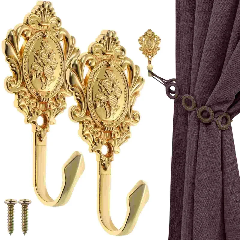 2 Stück/Set Europäische Retro-Legierung Fächerförmige Haken Gardinenhaken Kleiderhaken Rosenmuster Gardinen-Dekorationszubehör